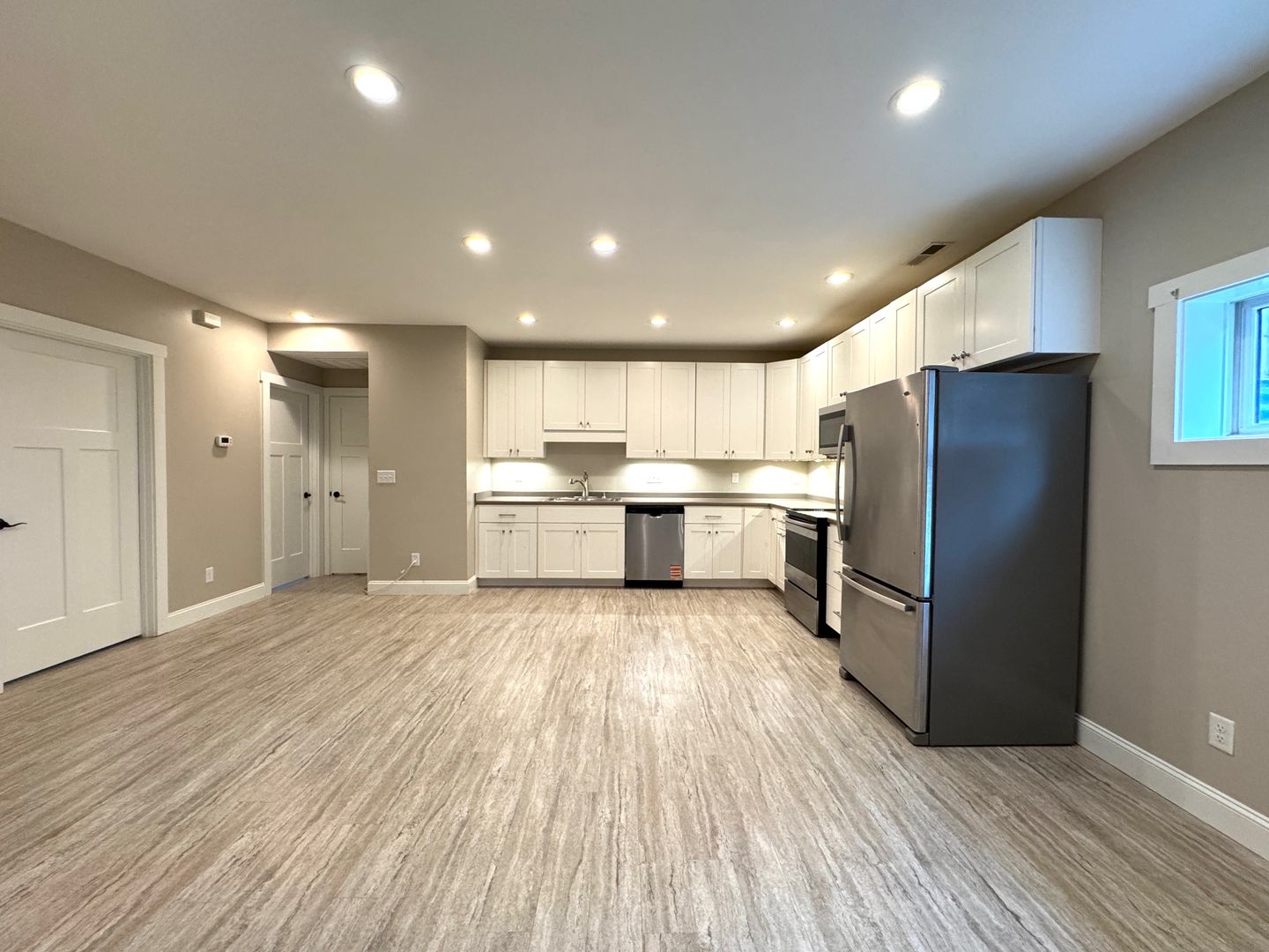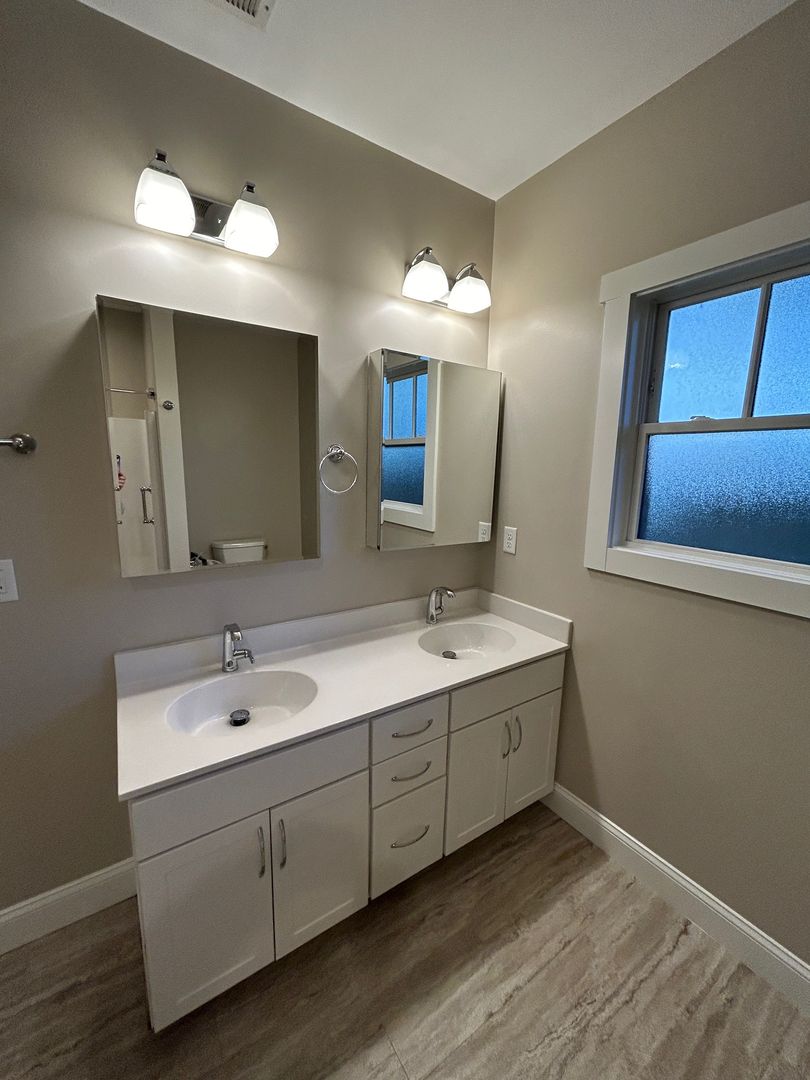 This modern two bedroom apartment is minutes from Downtown yet set in a leafy neighborhood with a community feel. Set within a large house, the downstairs apartment features a large LR/DR/Kitchen with plenty of storage and counter top space. The two good sized bedrooms have lots of windows for plenty of natural light and good sized closets. The bathroom features a double vanity and shower/tub combo.