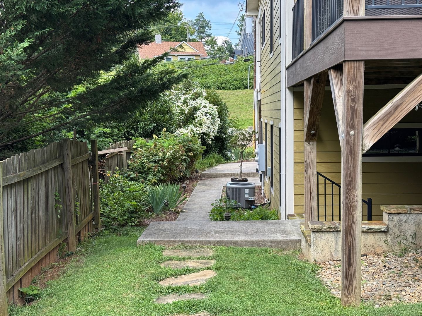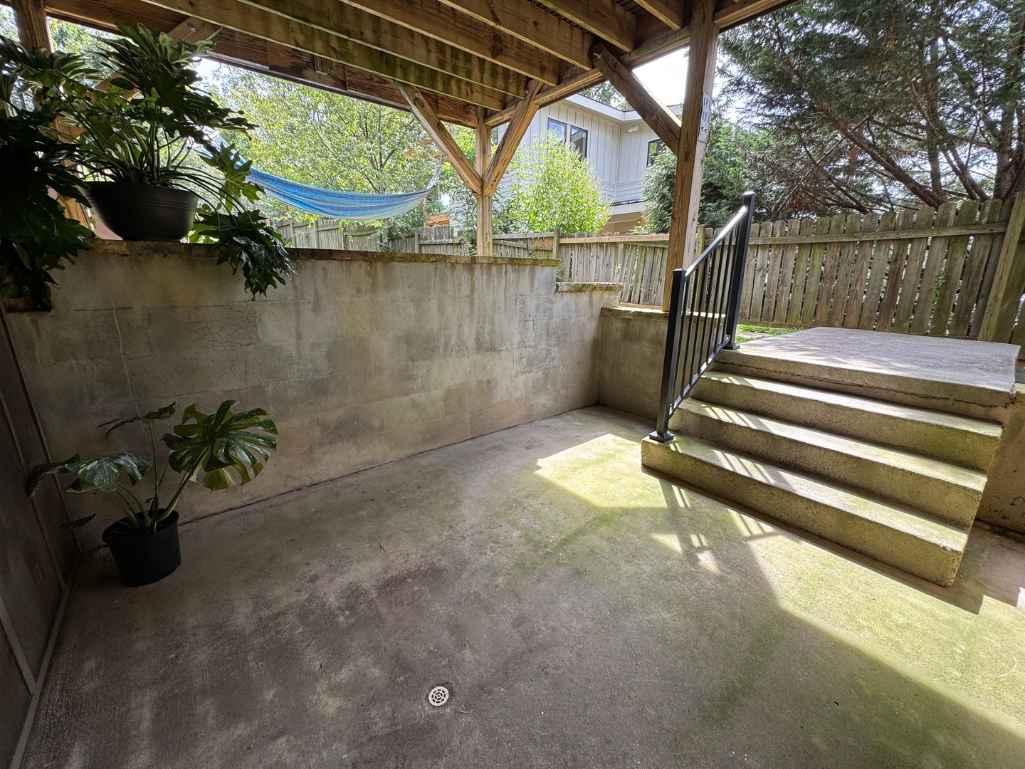 Outside is equally nice! There is a lovely enclosed patio just off the LR which leads to an outdoor patio perfect for a grilling out. Both are ideal for plants, seating areas and private enough to feel secluded and cozy. The beautiful shared backyard is full of established plants, trees and bushes and is taken care of so you can enjoy and not worry about lawn care.
