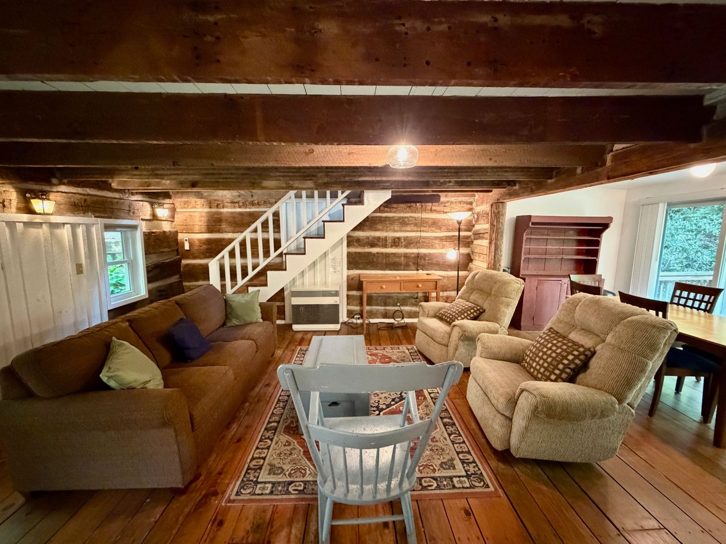 This charming 2-bedroom, 1-bath log cabin in Montreat, NC blends historic character with modern convenience. The open-plan living, dining and kitchen features hardwood floors, a stove/oven, refrigerator, microwave and dishwasher, plus a freestanding wood stove for added warmth and atmosphere.