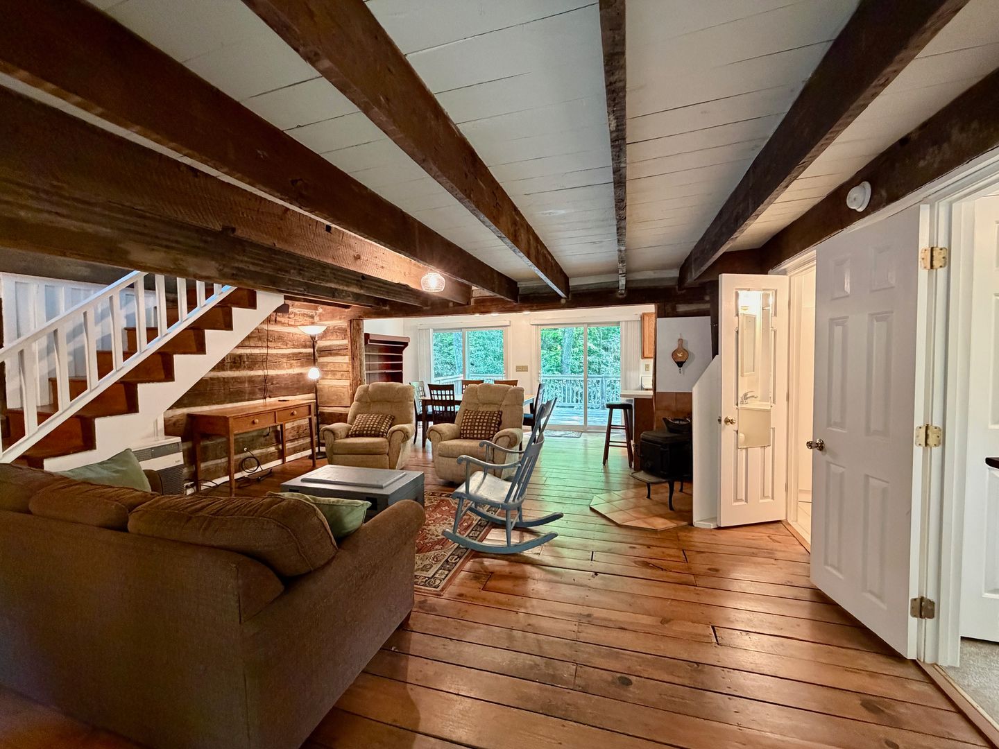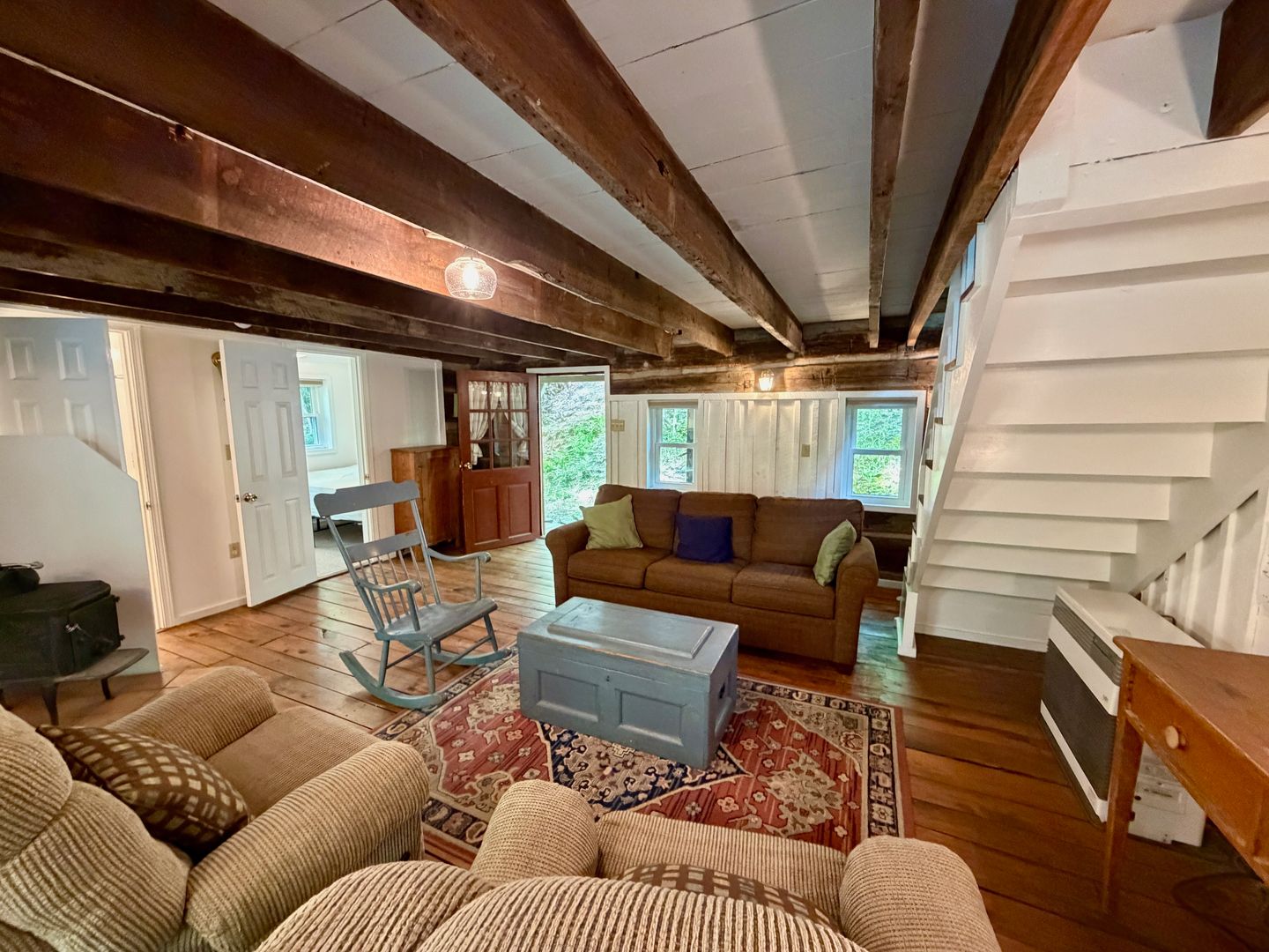 High-efficiency mini-splits provide efficient climate control, and an office nook and laundry room with washer/dryer add functionality. Enjoy outdoor living from the deck overlooking a wooded lot and beautiful creek, with designated off-street parking for one car and road parking for a second car. The large storage room downstairs is perfect for outdoor gear, holiday decorations or even an artists studio or workshop!