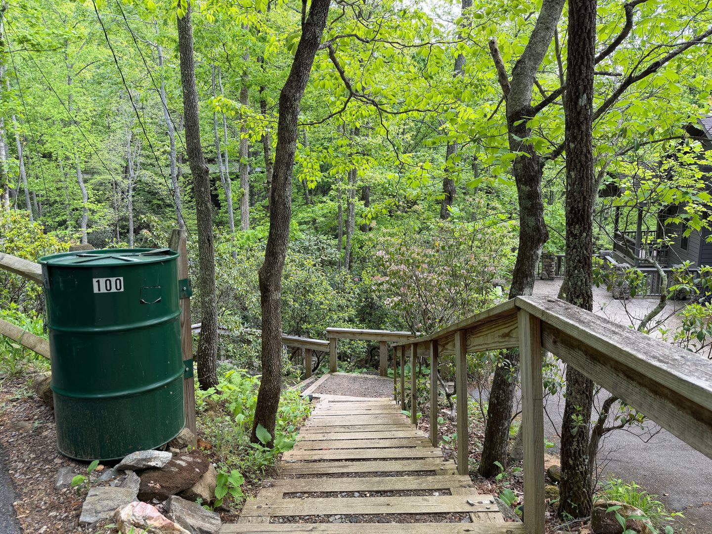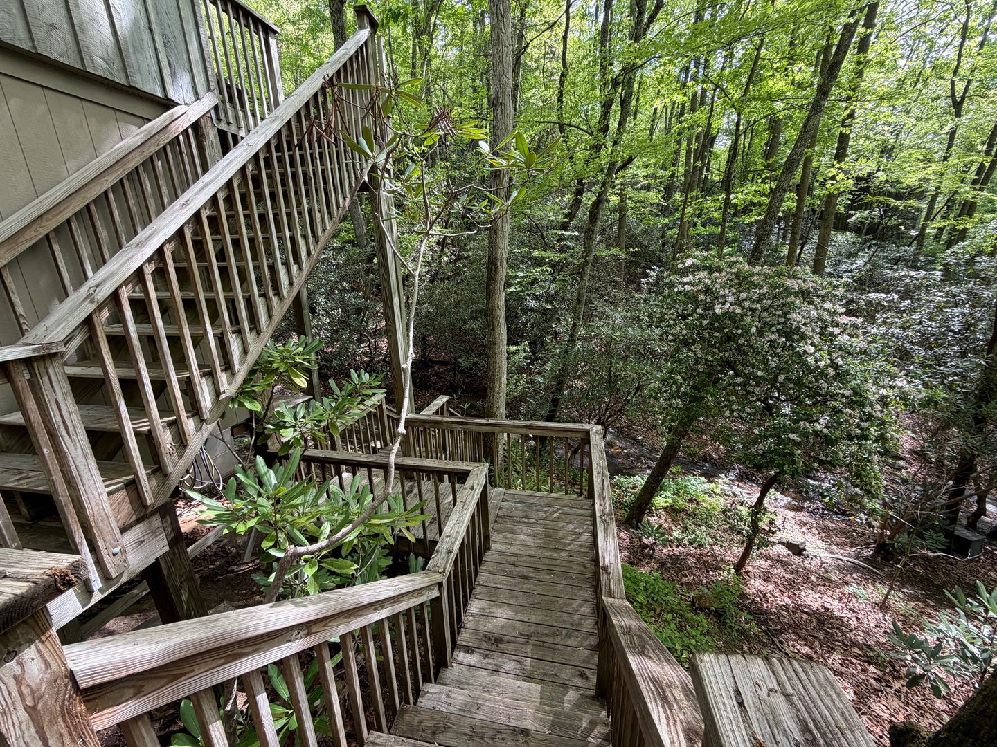 There are multiple stairs down to the creek but Oh so worth it!!!