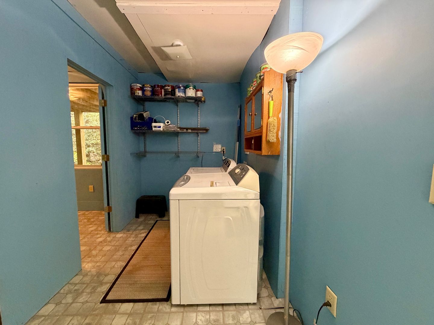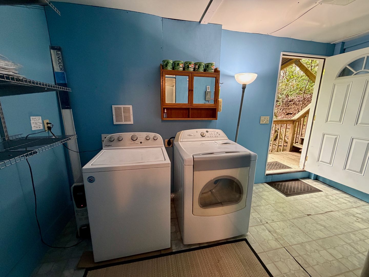 There are multiple stairs to the laundry room and you must go outside to get to that area (also where the storage room is).