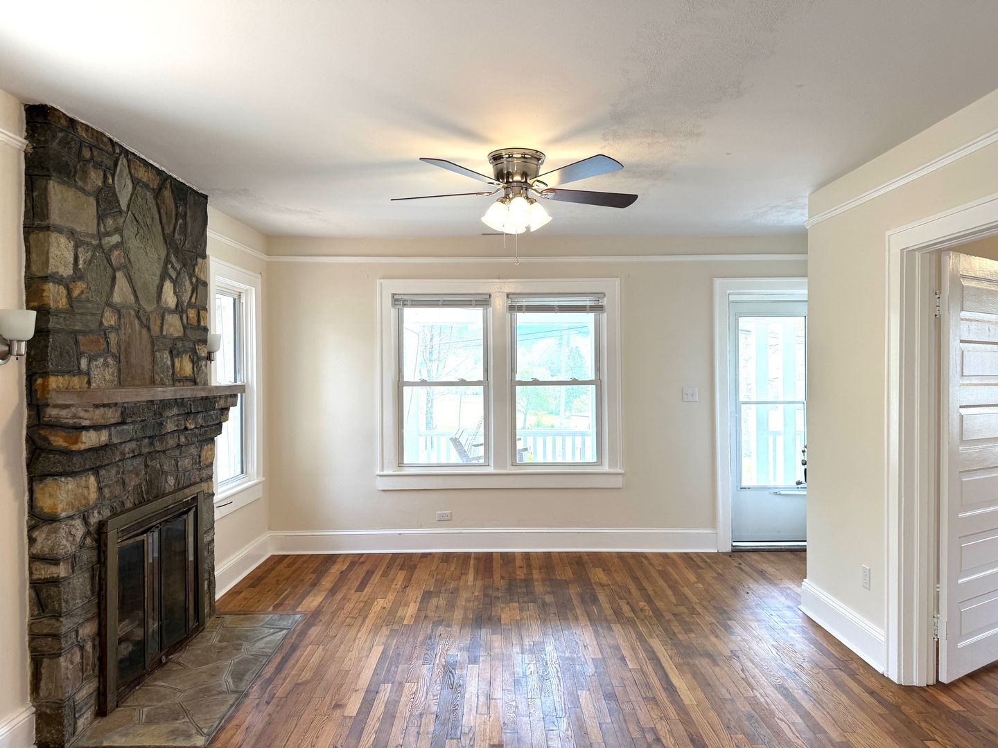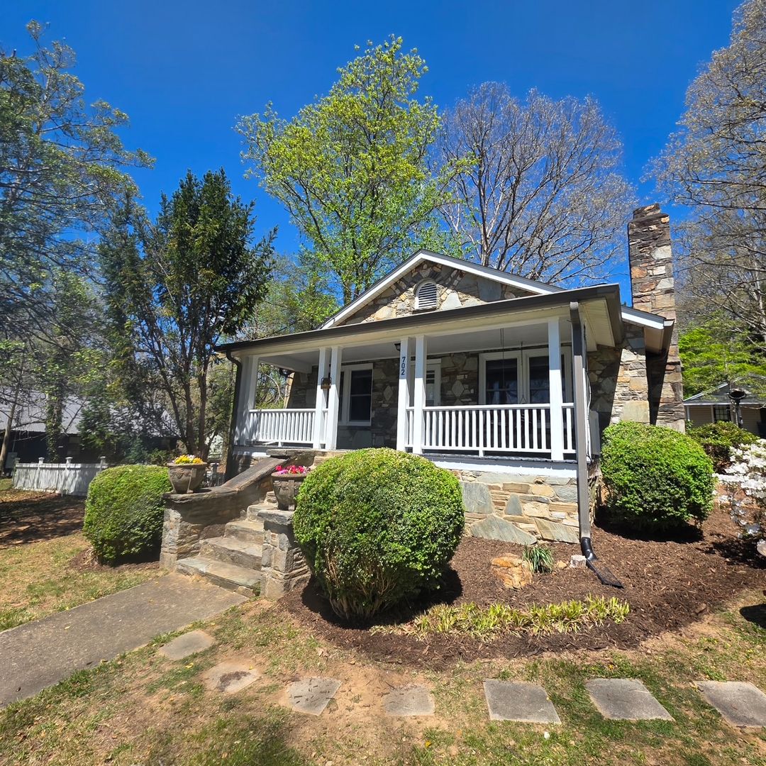 This recently renovated 1940's stone cottage in central Black Mountain offers 2 bedrooms, 1 bathroom with built in floor to ceiling storage cabinets, a large LR/DR, kitchen and large enclosed patio on the main level. Downstairs is a large partially finished basement perfect for dry storage, home gym, rec room or workshop with a second full bathroom. The main living area has been fully repainted, original hardwood floors have been refinished, new lighting and appliances installed. Plenty of TLC has gone into giving this property a second lease on life!